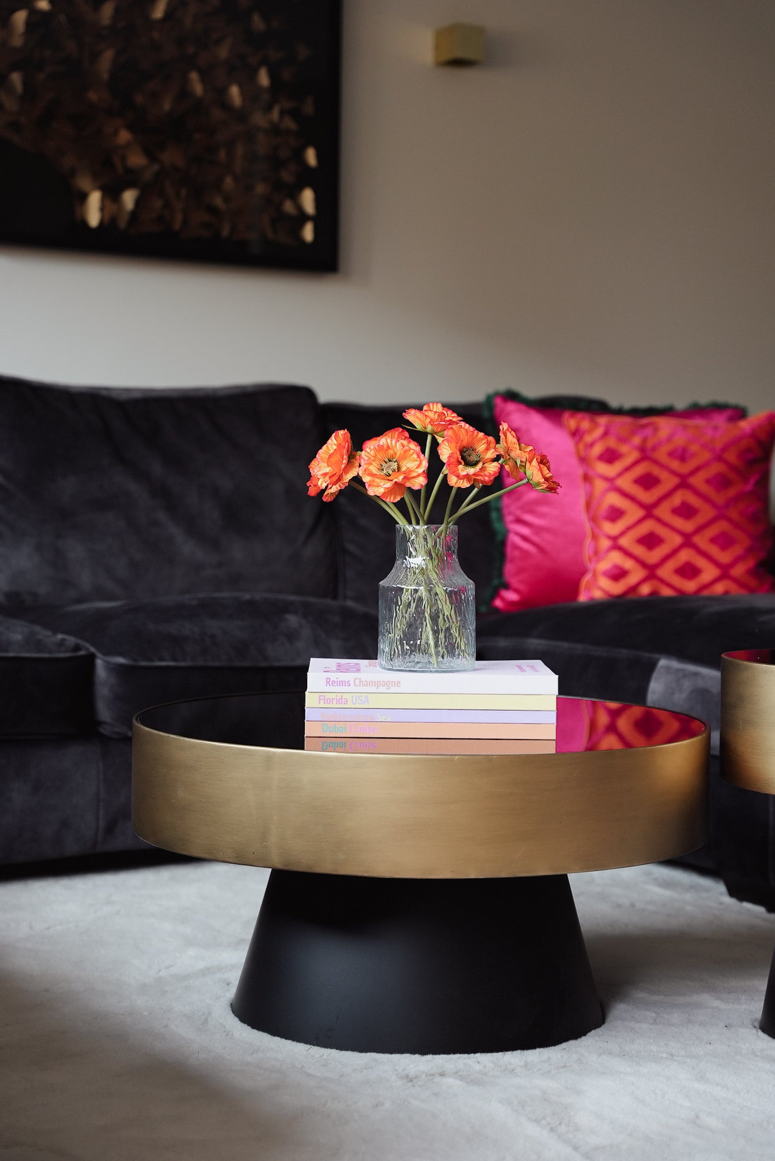 • Intens oranje bloemen met levendige details zorgen voor een warme en uitnodigende sfeer.