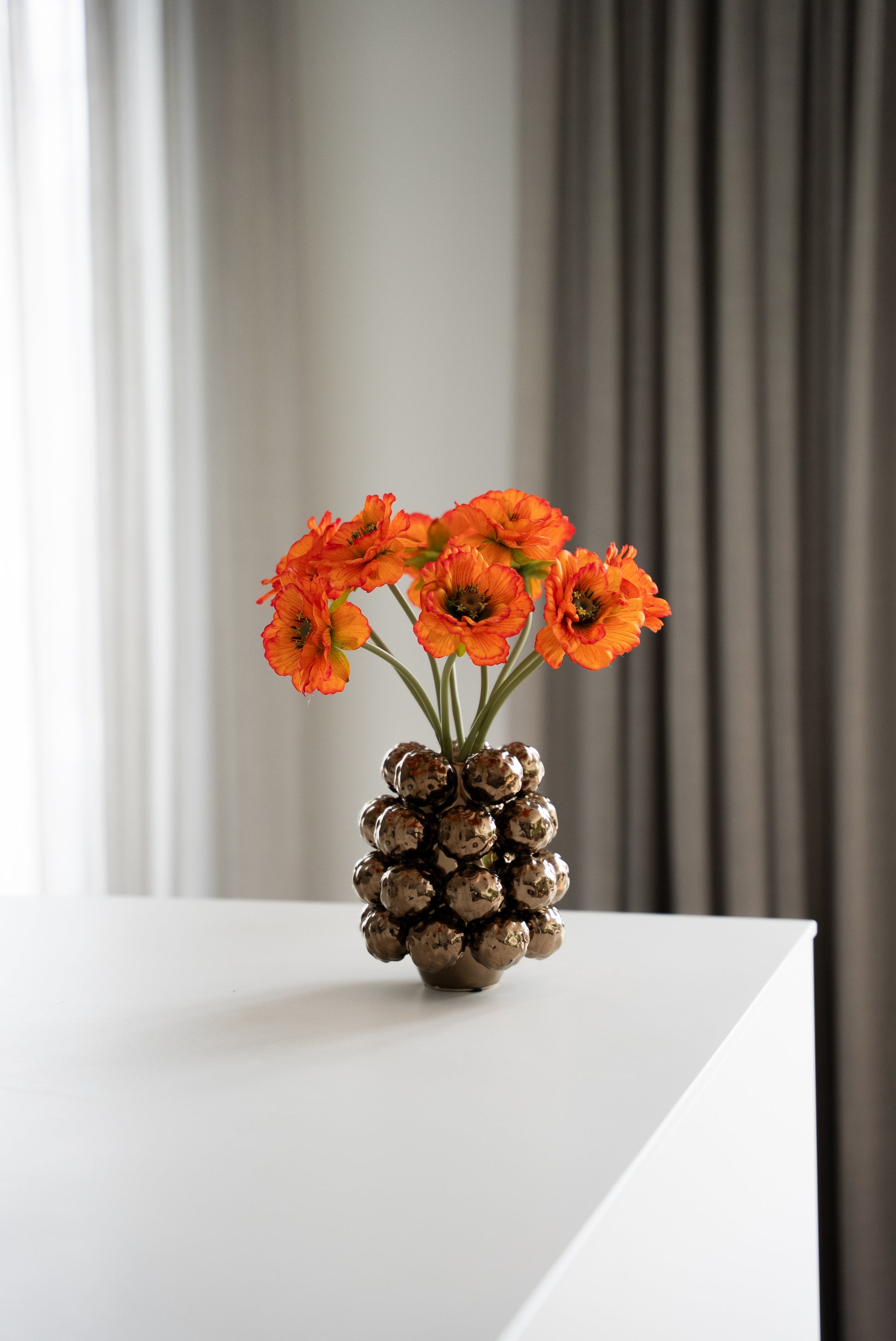 Renee past prachtig in minimalistische interieurs, maar voelt zich ook thuis in een eclectische of landelijke omgeving. Door het compacte formaat en de sprekende kleur is dit boeket ideaal voor kleinere tafels, nachtkastjes of als eyecatcher op een bureau.