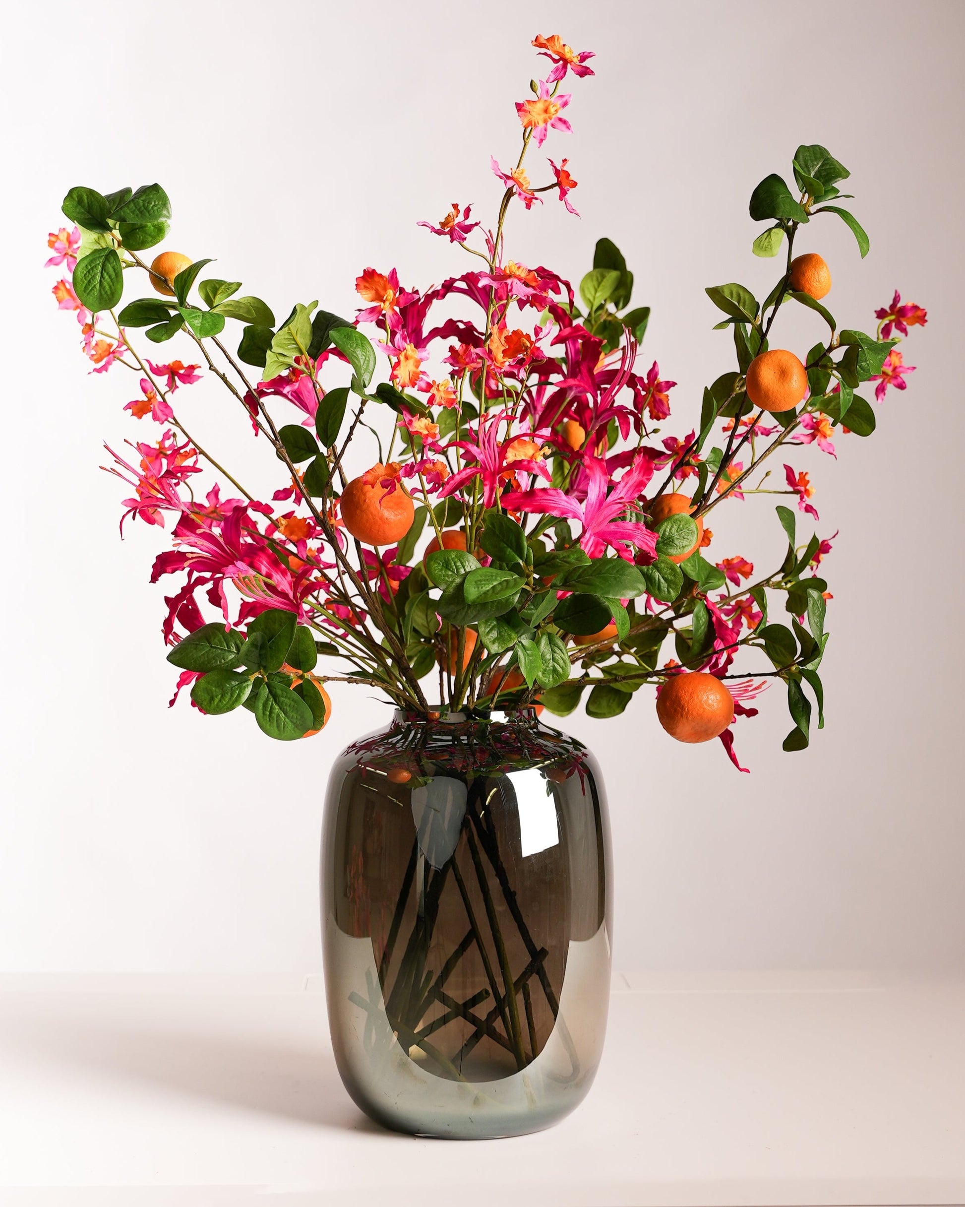 • Exotische uitstraling: De citrusvruchten geven het boeket een speelse, tropische touch die je niet vaak ziet in traditionele bloemstukken.
